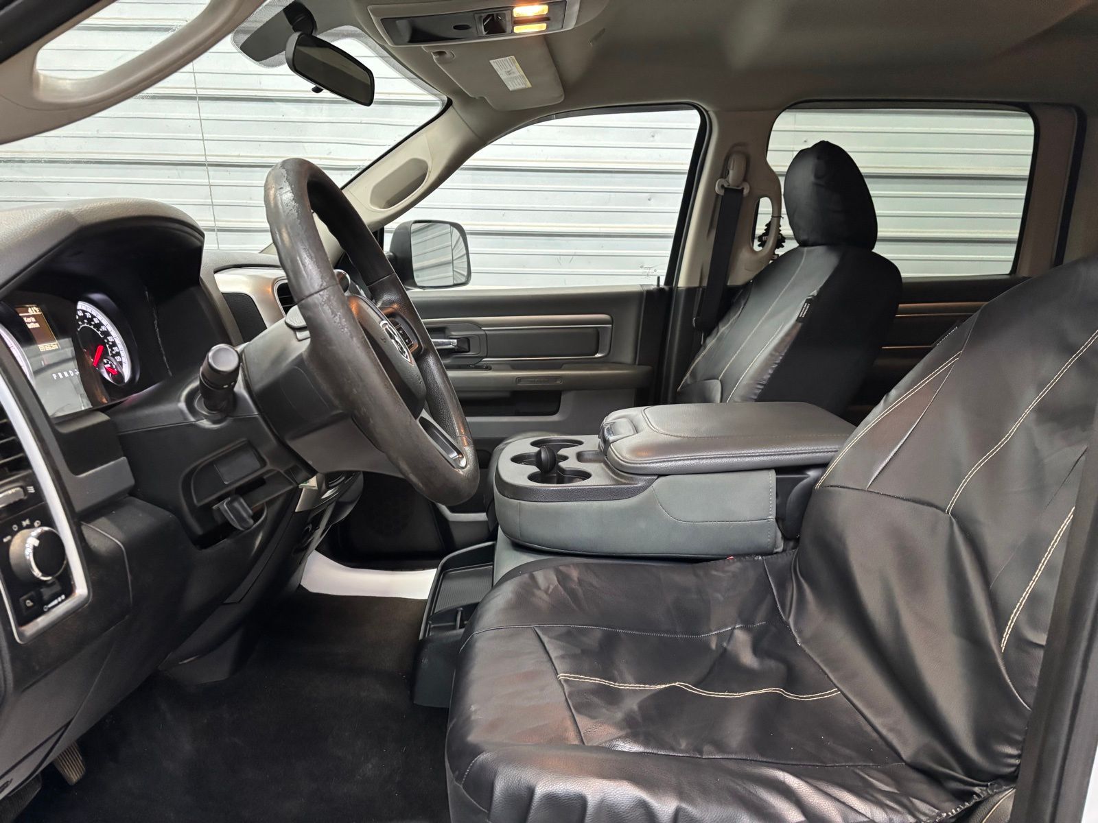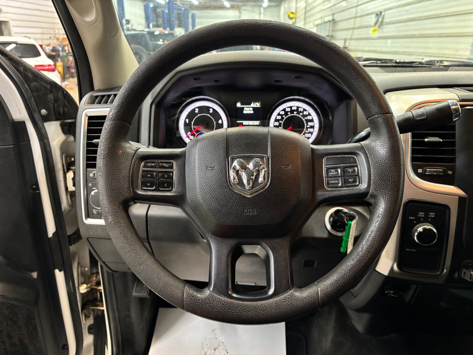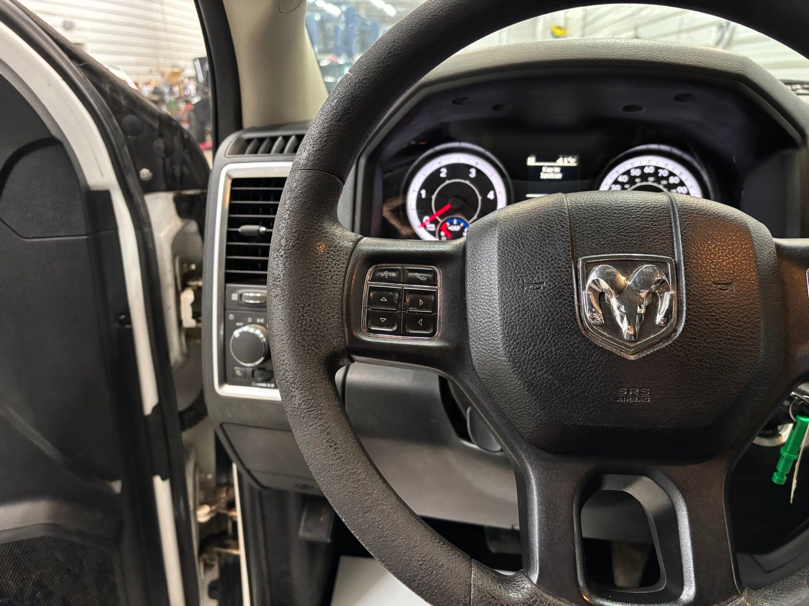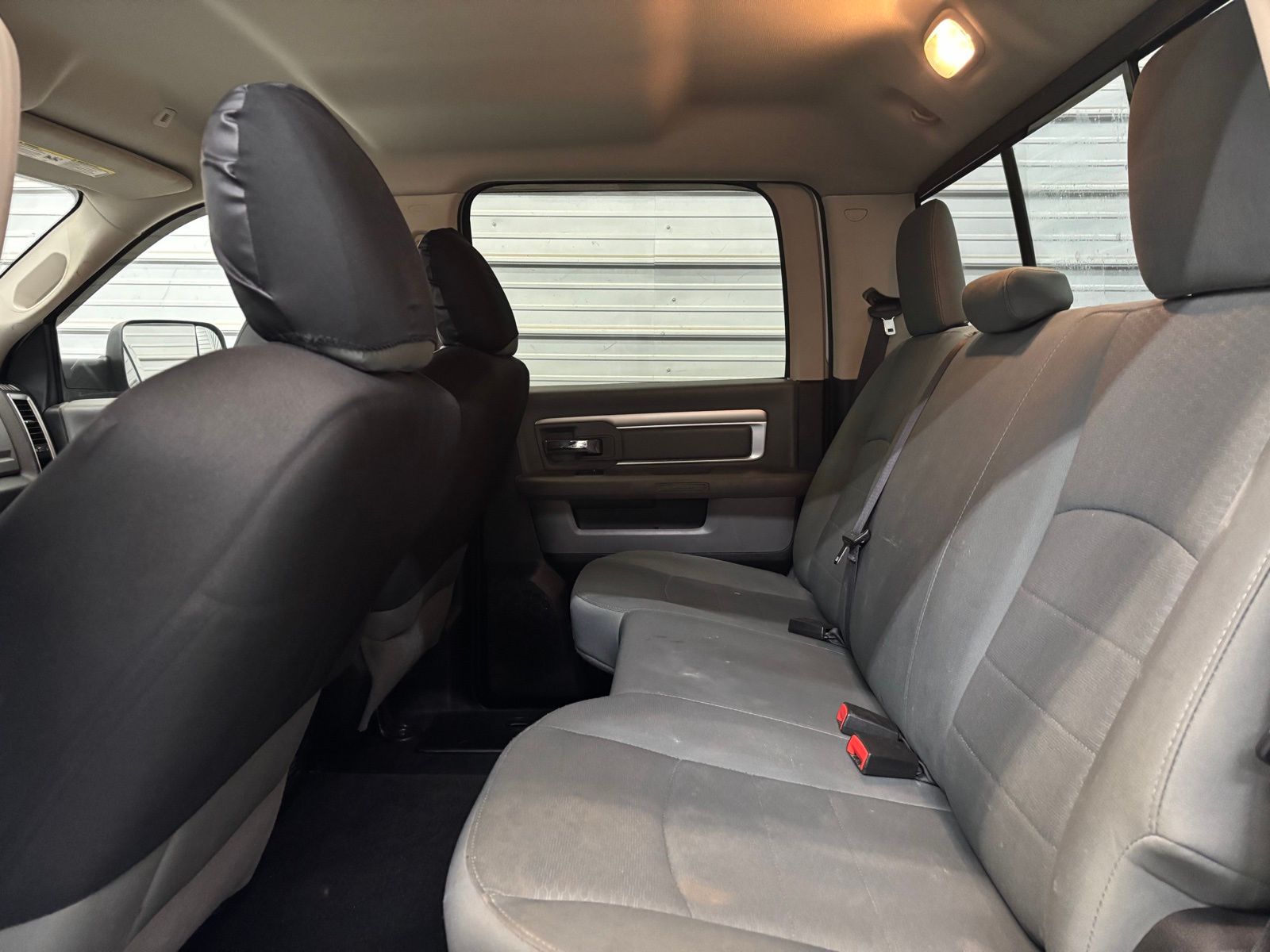 AUX)|Radio data system|Radio: Uconnect 3 w/5" Display|SiriusXM Satellite Radio|Air Conditioning|Power steering|Power windows|Remote keyless entry|Tip Start|Traction control|4-Wheel Disc Brakes|ABS brakes|Dual front impact airbags|Dual front side impact airbags|Front anti-roll bar|Locking Tailgate|Low tire pressure warning|Occupant sensing airbag|Overhead airbag|Brake assist|Electronic Stability Control|Delay-off headlights|Fully automatic headlights|Panic alarm|Speed control|180 Amp Alternator|Electronically Controlled Throttle|Next Generation Engine Controller|Black Exterior Mirrors|Bumpers: chrome|Exterior Mirrors Courtesy Lamps|Exterior Mirrors w/Heating Element|Exterior Mirrors w/Supplemental Signals|Heated door mirrors|Hemi Badge|Manufacturer's Statement of Origin|Power Black Trailer Tow Mirrors|Power door mirrors|Rear step bumper|Trailer Tow Mirrors|Vendor Painted Cargo Box Tracking|Charge Only Remote USB Port|Compass|Driver door bin|Front reading lights|Illuminated entry|Integrated Voice Command w/Bluetooth|Outside temperature display|Overhead console|Passenger vanity mirror|Rear seat center armrest|Tachometer|Tilt steering wheel|Trip computer|Voltmeter|40/20/40 Split Bench Seat|Cloth 40/20/40 Bench Seat|Front Armrest w/Cupholders|Manual Adjust Seats|Front Center Armrest w/Storage|Passenger door bin|Center Hub|Wheels: 18" x 8.0" Steel Chrome Clad|Variably intermittent wipers