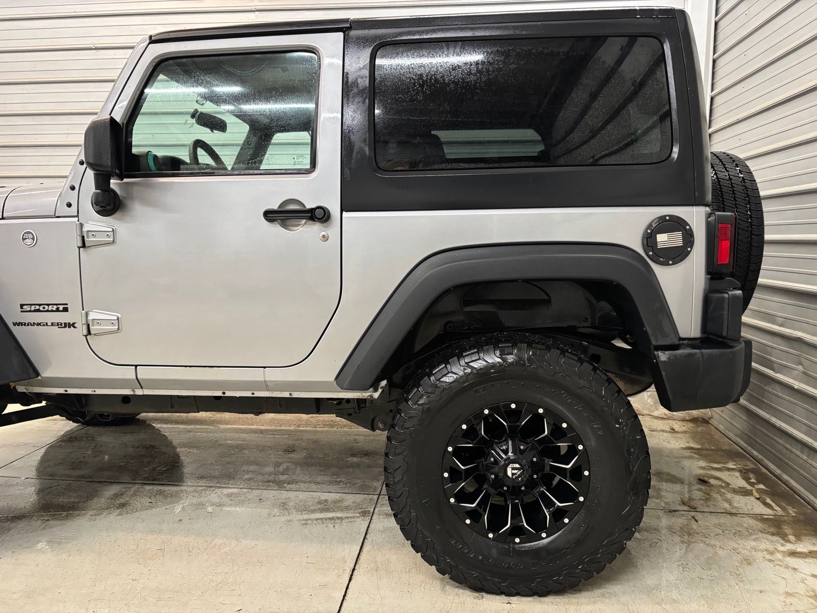 The exterior of this Wrangler JK Sport exudes a bold and adventurous style, with a sleek silver finish that turns heads wherever you go. The Black 3-Piece Hard Top and Deep Tint Sunscreen Windows provide a unique and customized look, while the Rear Window Wiper/Washer ensures clear visibility in any condition.