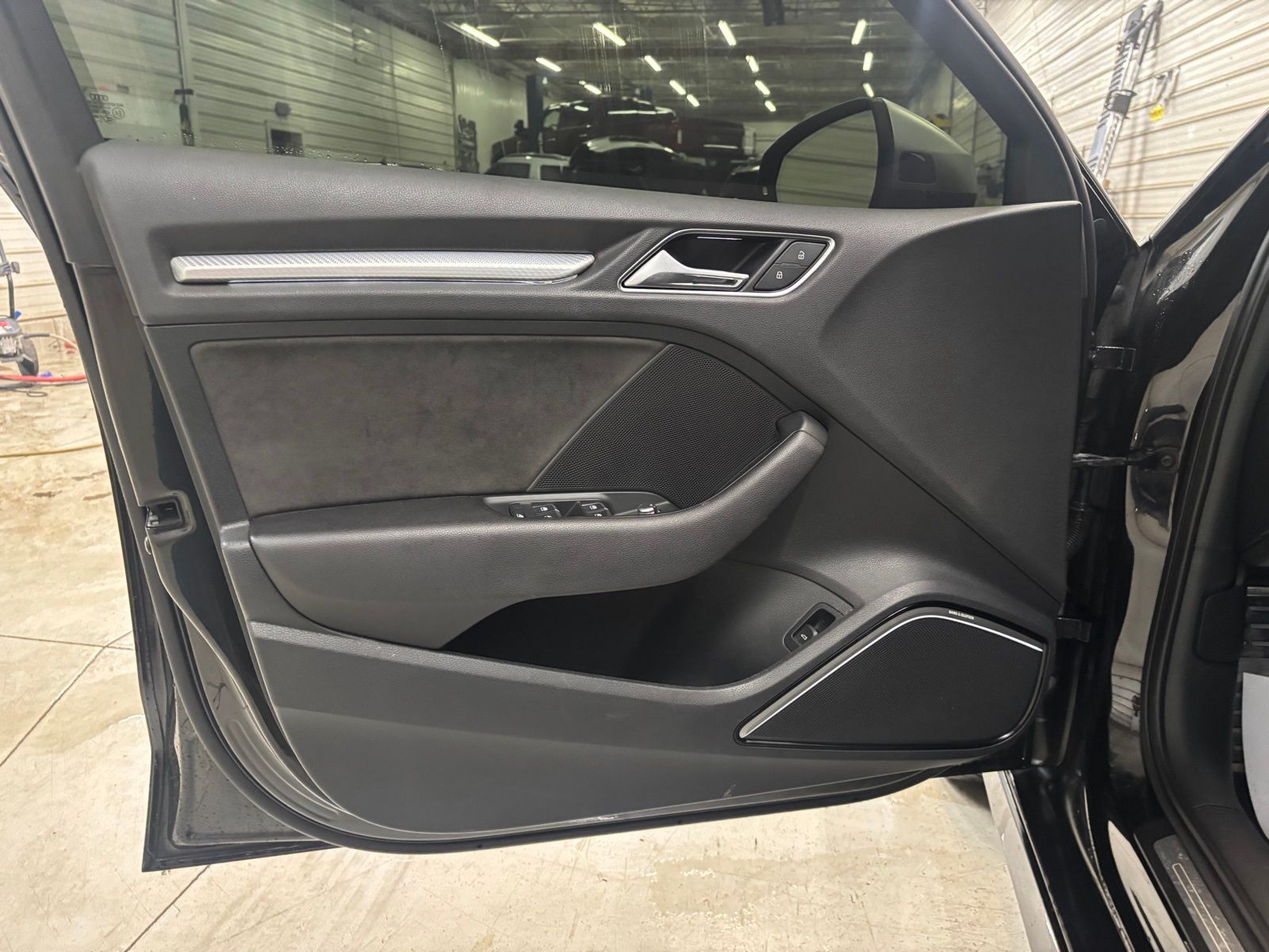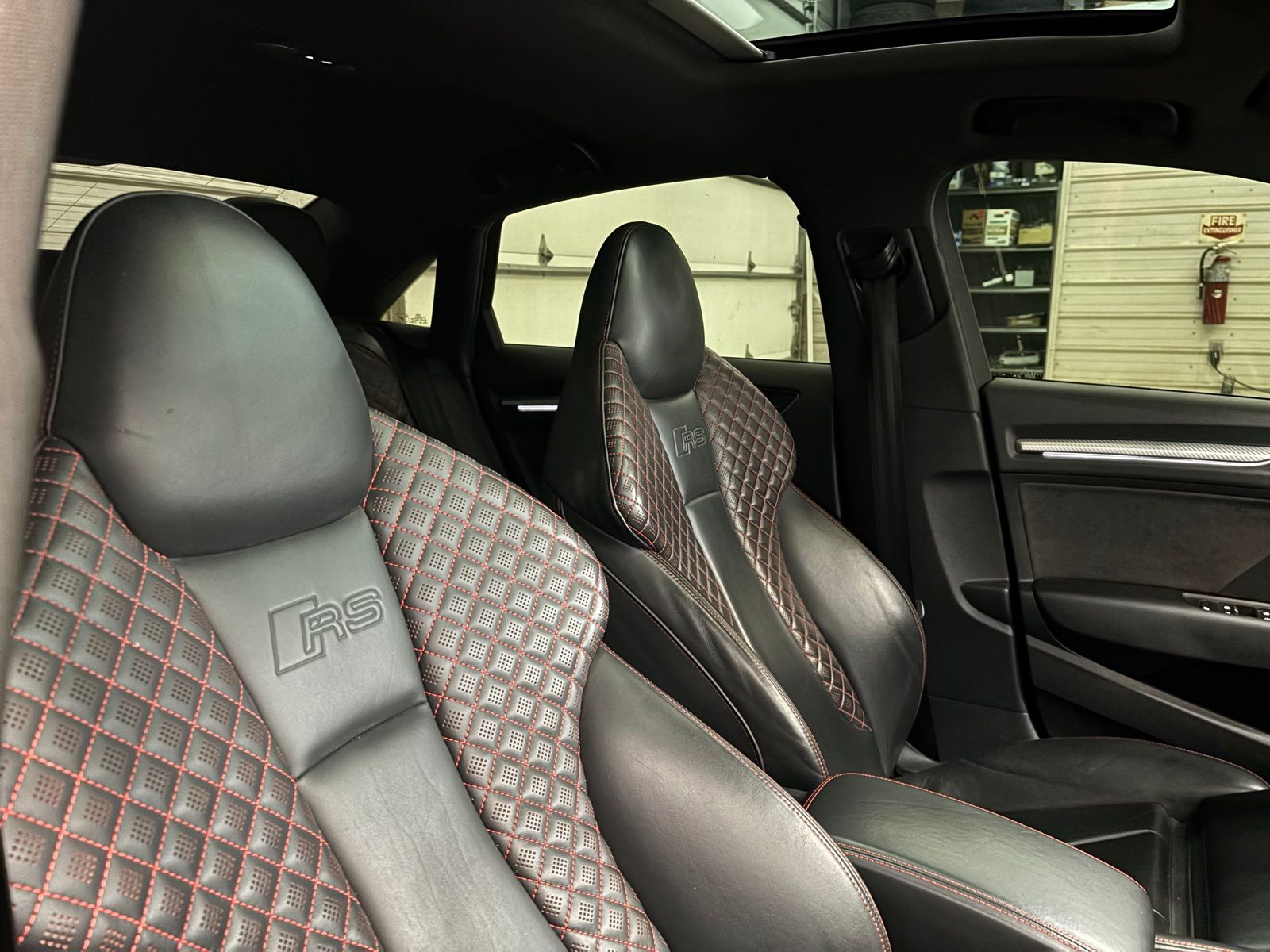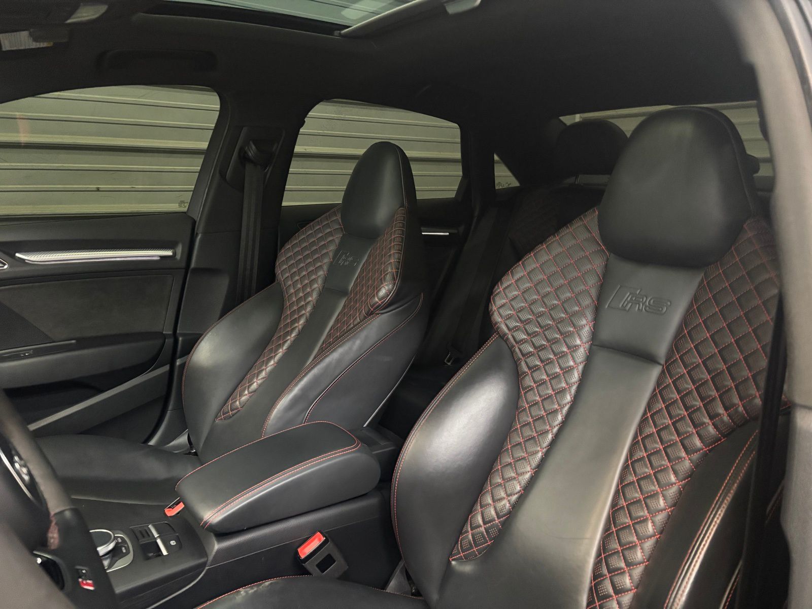 • 10 Speakers|AM/FM radio: SiriusXM|CD player|Radio data system|Radio: Audi Sound System|Air Conditioning|Automatic temperature control|Front dual zone A/C|Rear window defroster|Power steering|Power windows|Remote keyless entry|Steering wheel mounted audio controls|Adaptive suspension|Four wheel independent suspension|Speed-sensing steering|Traction control|4-Wheel Disc Brakes|ABS brakes|Dual front impact airbags|Dual front side impact airbags|Front anti-roll bar|Knee airbag|Low tire pressure warning|Occupant sensing airbag|Overhead airbag|Rear anti-roll bar|Red Brake Calipers|Power moonroof|Brake assist|Electronic Stability Control|Exterior Parking Camera Rear|Delay-off headlights|Front fog lights|Headlight cleaning|Rear fog lights|Panic alarm|Security system|Speed control|Auto-dimming door mirrors|Bumpers: body-color|Heated door mirrors|Power door mirrors|Spoiler|Turn signal indicator mirrors|Auto-dimming Rear-View mirror|Compass|Driver door bin|Driver vanity mirror|Front reading lights|Heated S Sport Front Seats|Illuminated entry|Outside temperature display|Passenger vanity mirror|Rear reading lights|Rear seat center armrest|Sport steering wheel|Tachometer|Telescoping steering wheel|Tilt steering wheel|Trip computer|Fine Nappa Leather Seat Trim|Front Bucket Seats|Front Center Armrest|Heated front seats|Split folding rear seat|Passenger door bin|Alloy wheels|Wheels: 19" 5-Arm-Blade-Design Silver Finish|Rain sensing wipers|Speed-Sensitive Wipers|Variably intermittent wipers|Audi Exclusive Panther Black Crystal Effect!