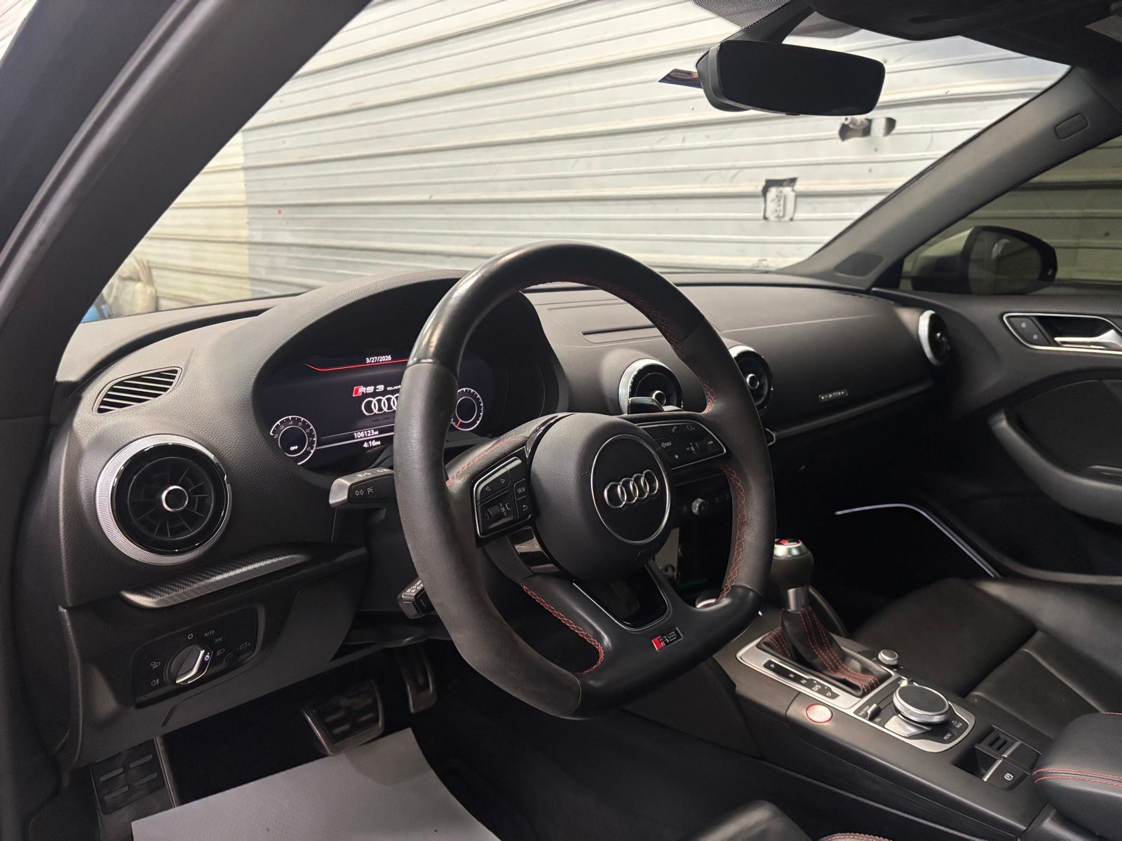 Meticulously equipped, this RS 3 is a true driver's delight. Indulge in the rich sound of the Audi Sound System, while enjoying the convenience of features like Adaptive Suspension, Heated Sport Front Seats, and a Panoramic Sunroof. The Fine Nappa Leather Seat Trim and Sport Steering Wheel provide a refined, high-performance touch to the interior.